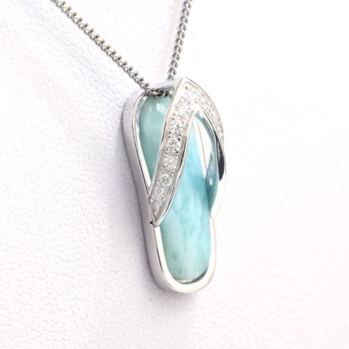 Dominican Larimar Gemstones Pendant Silver Necklace