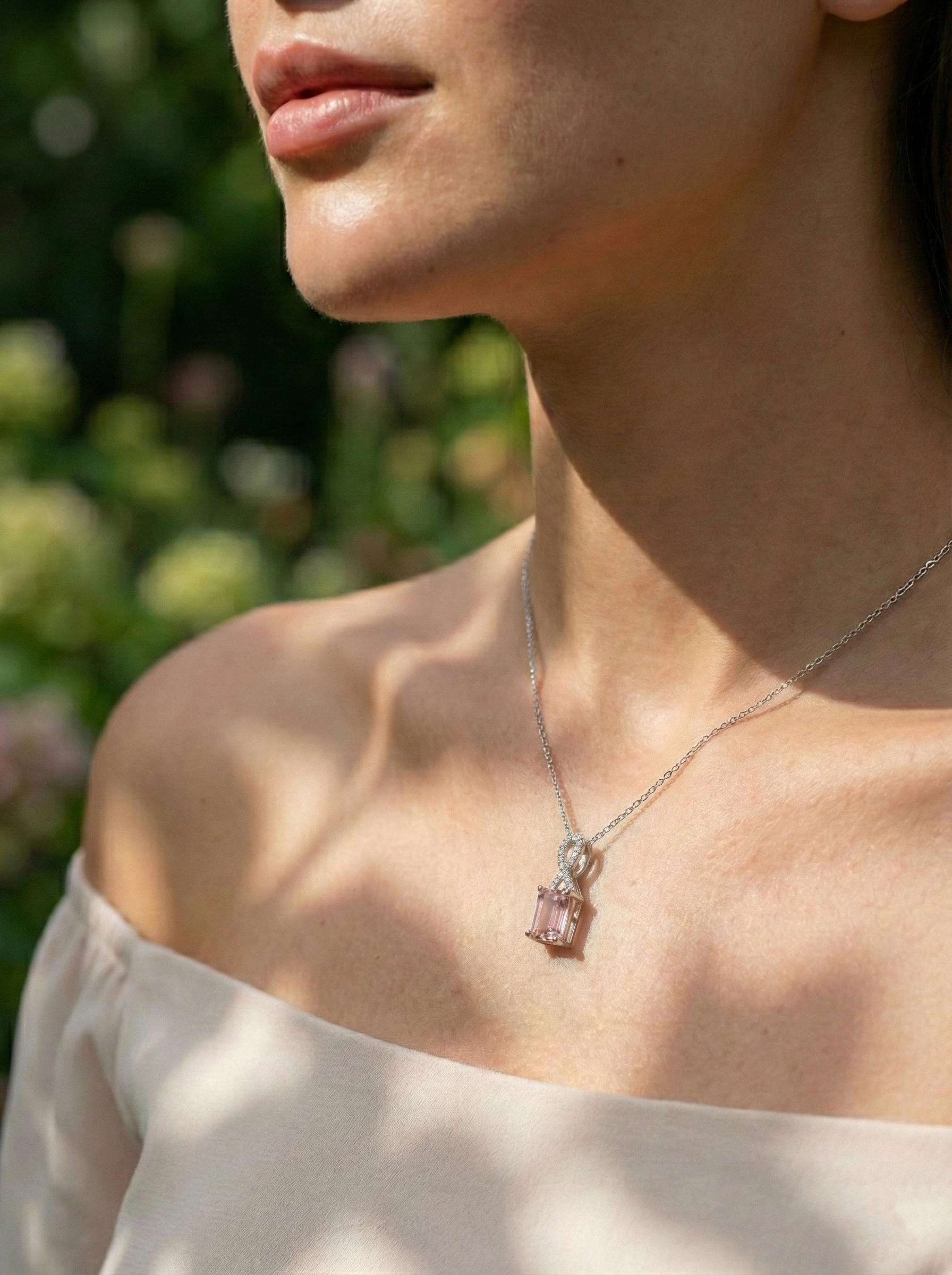 Morganite is the stone of "Divine Love." It is a meaningful alternative to diamonds for Anniversaries, Valentine's Day, or as a promise of affection.